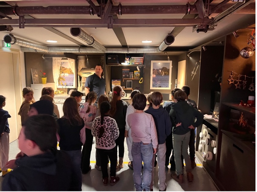 Außerdem haben wir mit einer Nebelmaschine geübt, wie man sich bei einem Brand verhält. Der Raum wurde ganz neblig wie bei echtem Rauch. Gemeinsam haben wir uns, möglichst tief am Boden bewegt, weil dort noch besser Luft ist und uns ins freie „gerettet“.